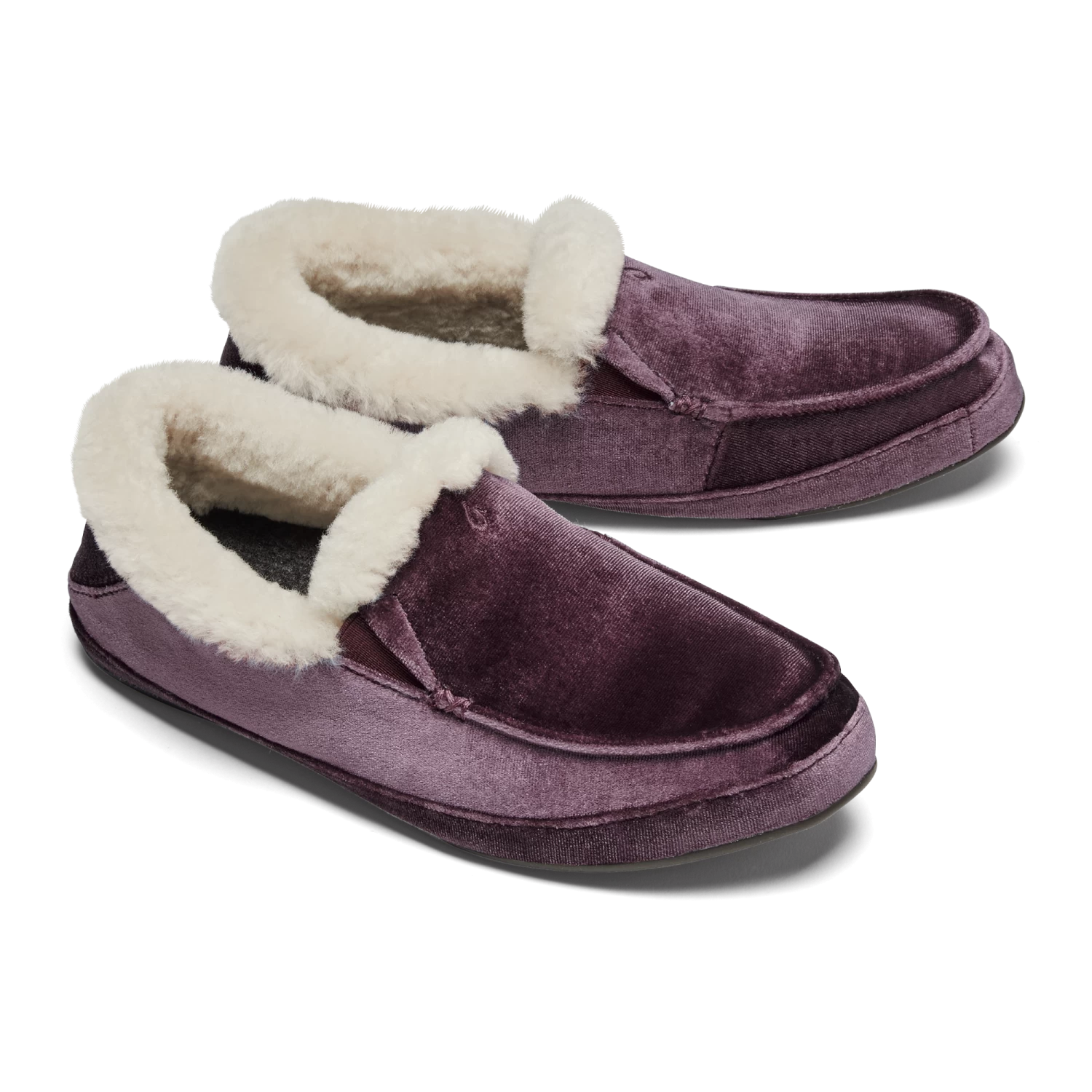 Velvet materials reminiscent of the shimmering ocean surface at sunrise—the Kuʻuna Lānui has a sophisticated style made for soaking it in. Lined with cozy shearling, these slippers are perfect for those quiet moments before hitting the streets or surf.